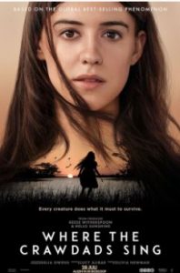 Where the crawdads sing (om een duistere reden in het Nederlands vertaald als ‘DAAR waar de rivierkreeften zingen’), is de onwijs succesvolle debuutroman van Delia Owens. Een verfilming (VS, 2022) kon niet uitblijven. ‘Daar’, de plek dus waar die rivierkreeften zo hun best doen, bevindt zich in een uitgestrekt moerasgebied in North Carolina. Kya, inmiddels een jaar of twintig, is daar door de rest van haar gezin alleen achtergelaten (nadat hij haar hele familie had weggeterroriseerd, was de drankzuchtige, gewelddadige vader als laatste vertrokken). Ze houdt zich knap staande en voelt zich zo thuis in haar waterige habitat, dat ze door de naburige dorpsbewoners met een schuin oog wordt aangekeken en spottend ‘moerasmeisje’ wordt genoemd. Twee jonge kerels willen wat met haar. Een goede en een slechte. De goede gaat uiteindelijk studeren in de grote stad. De slechte gaat het alleen maar om de seks. Als die aan het begin van de film dood wordt aangetroffen in het moeras, weet het dorp genoeg. Wie anders dan het moerasmeisje is de dader. Vanaf dat moment gaat Where the crawdads sing langzaam over in een spannende rechtbankthriller. De hoofdrol wordt fantastisch gespeeld door de jonge Britse actrice Daisy Edgar-Jones.